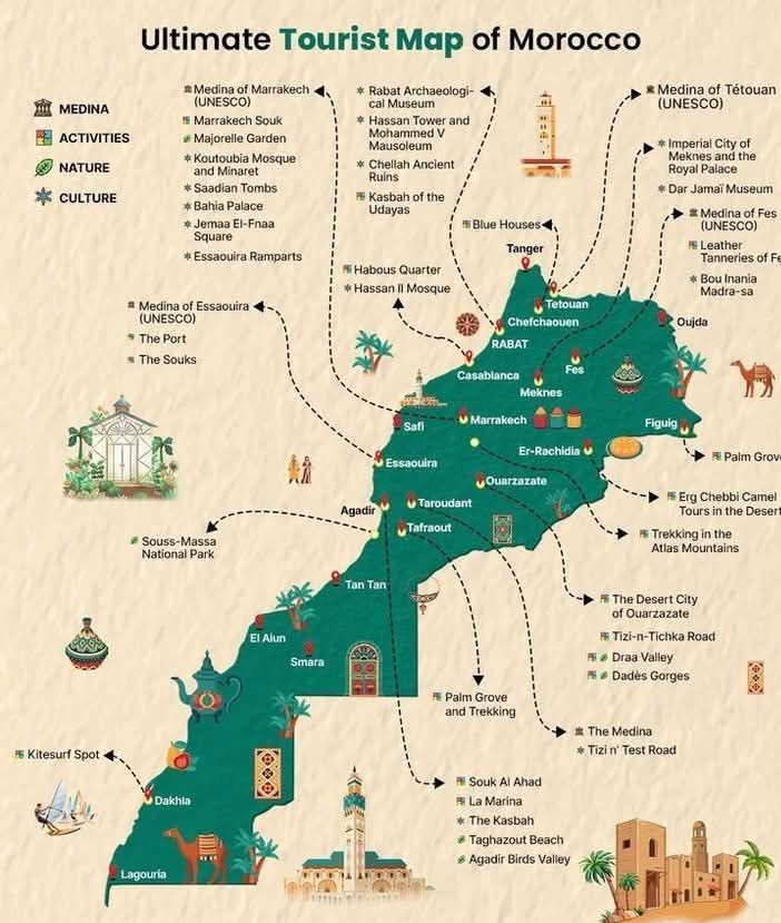 Morocco is also famous for its spectacular natural sites and historical gems: