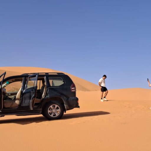 As the sun sets, the sky unfolds in breathtaking shades of orange, rose, and violet, casting a warm glow over the dunes. At dawn, witness the desert come alive under soft golden light, offering a moment of pure serenity. Along the way, enjoy peaceful pauses, capture unforgettable memories, and connect with the natural landscapes and rich traditions of the Moroccan Sahara.